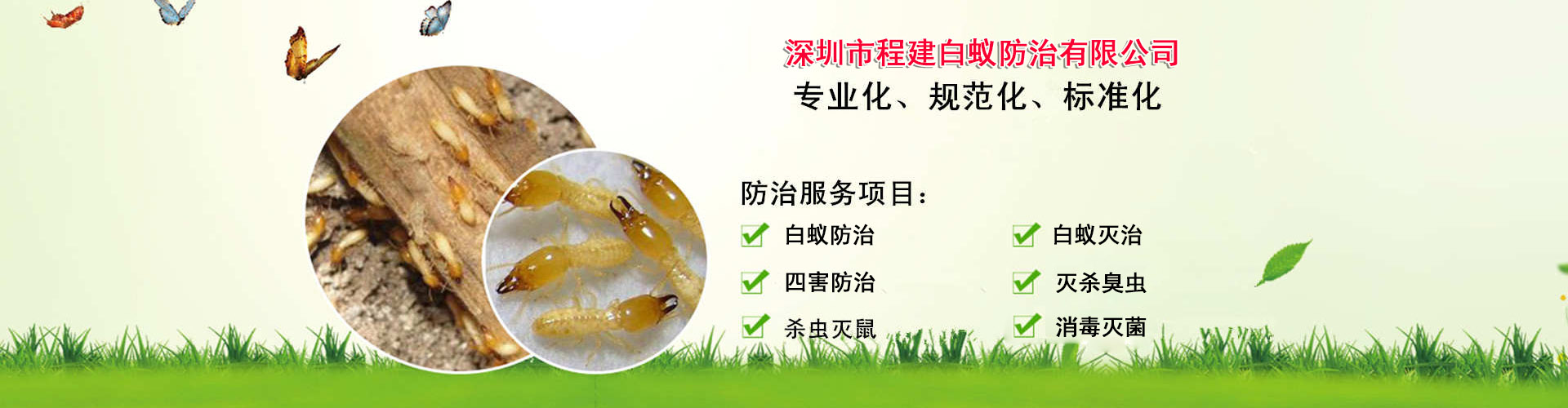 深圳市程建白蟻防治中心有限公司:致力于白蟻防治工程、深圳市白蟻防治公司、預防白蟻工程、建筑工程白蟻預防、白蟻滅治、殺白蟻、滅白蟻、治白蟻、除白蟻、防白蟻,白蟻消殺、預防白蟻、深圳市殺白蟻公司、有害生物防制:深圳市殺蟲公司、深圳消殺公司、深圳市消殺中心、除四害、白蟻如何根治、深圳市消毒公司、家里發(fā)現白蟻怎么辦、滅蟑螂、 工廠殺蟲、物業殺蟲、辦公室消殺、工業園殺蟲等、專注于為客戶民提供專業解決蟲害方案,通過技術團隊創(chuàng)新研發(fā)新技術和學習傳統技術相結合,針對客戶需求,為客戶量身打造更加全面的白蟻防治、白蟻滅治、深圳市殺蟲、深圳消殺、深圳市殺白蟻等有害生物防制施工措施。
